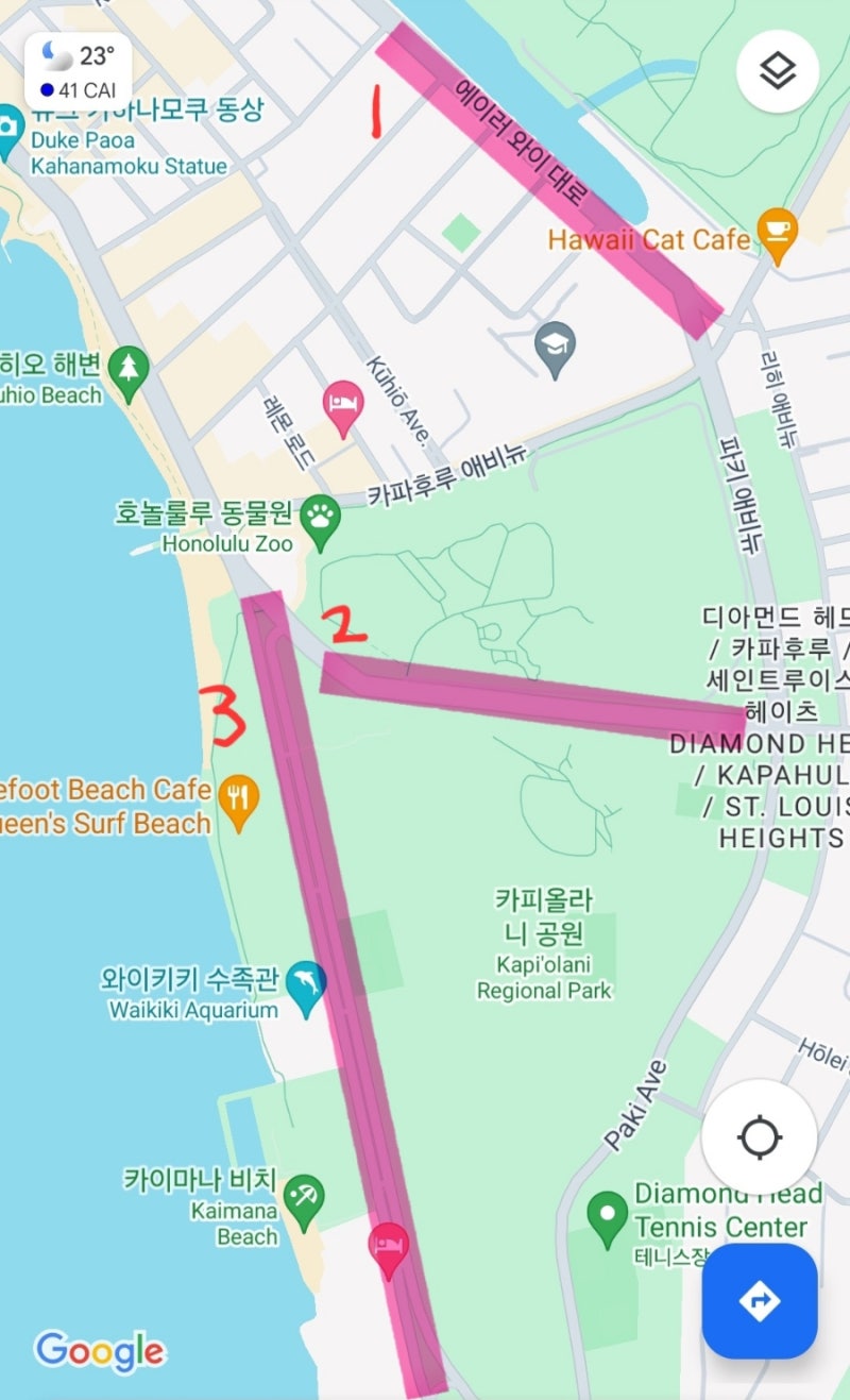 호놀룰루 동물원 옆에 위치한 거리로 24시간 무료 주차가 가능하다.